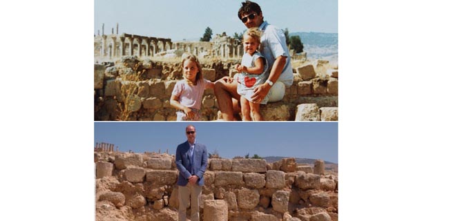 Untuk ikut mengenang masa kecil istrinya, William berfoto di titik yang sama saat dulu Kate berfoto dengan ayah dan adik perempuannya. Di masa kecil, istri William pernah tinggal selama tiga tahun Yordania.