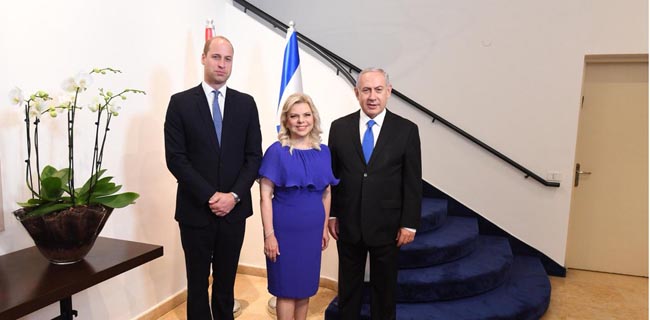 William yang bergelar The Duke of Cambridge diterima oleh Perdana Menteri Benjamin Netanyahu dan istrinya Sara di kediaman resmi perdana menteri.