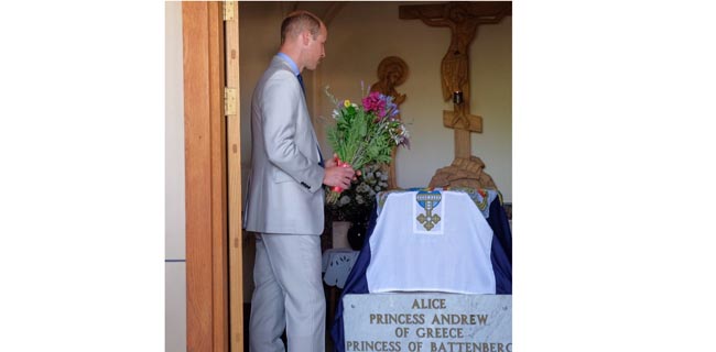 Di hari terakhir kunjungannya ke Israel, Pangeran William menyempatkan diri berziarah ke makam nenek buyutnya Putri Alice di Gereja Santa Maria Magdalena, Bukit Zaitun, Kamis (28/6).