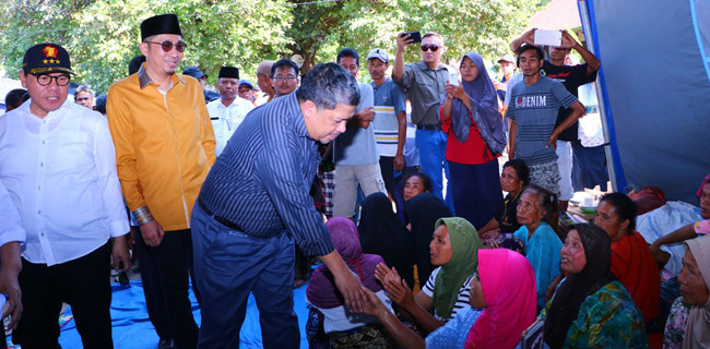Wakil Ketua DPR RI Fahri Hamzah, mewakili anggota dan pimpinan DPR RI membawa langsung bantuan ke NTB. Dia ditemani dua anggota DPR dari dapil NTB, Lalu Gede Syamsul Mujahidin dari Faksi Hanura dan M. Syafruddin dari Fraksi PAN.
