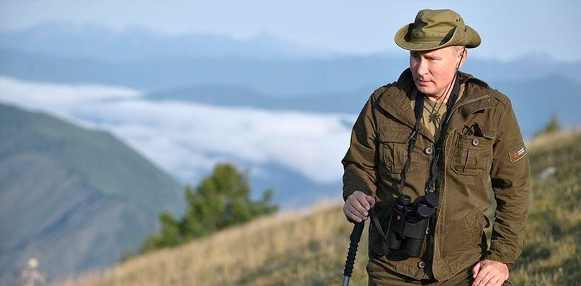 Merujuk pada foto-foto yang diterbitkan oleh Kremlin baru-baru ini, Putin yang tampak santai berjalan santai di pegunungan dan hutan di Republik Tyva di Siberia.