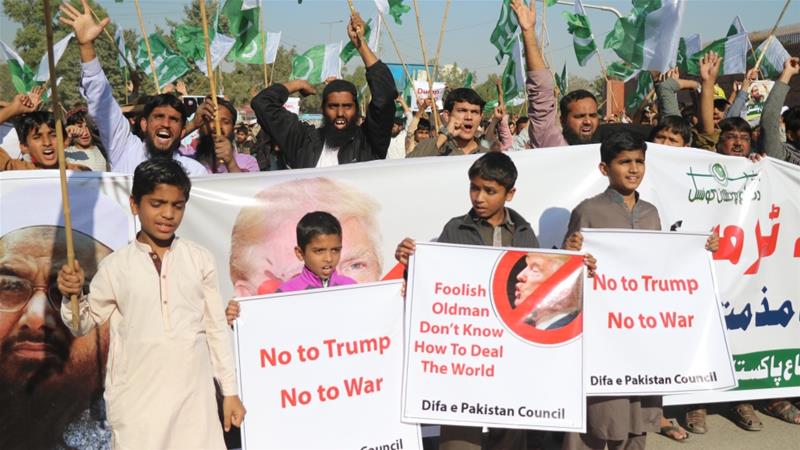 Al Jazeera, Trump menuduh Islamabad memberikan tempat yang aman bagi para pejuang yang melancarkan perang 17 tahun di negara tetangganya Afghanistan. Tuduhan itu dibantah keras pemerintah Pakistan.