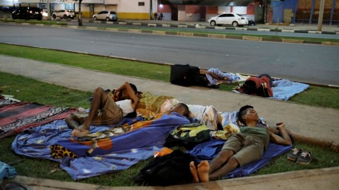 Banyak dari para migran itu tinggal di jalanan Boa Vista tanpa sanitasi atau air atau tempat penampungan yang layak.