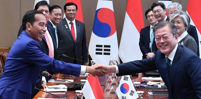 Kunjungan Jokowi selama dua hari di negeri Gingseng merupakan balasan terhadap kunjungan Presiden Moon Jae-In tahun lalu ke Indonesia.