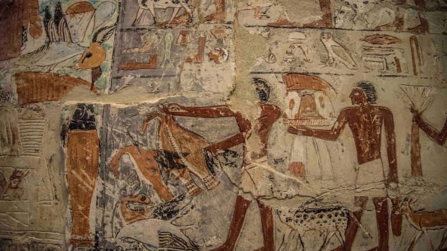 Itu adalah Makam Mehu yang berusia 4.000 tahun milik seorang pejabat tinggi. Arkeolog mengatakan dekorasi dindingnya yang berwarna-warni menjelaskan bagaimana orang Mesir hidup lebih dari seribu tahun sebelum piramida dibangun.