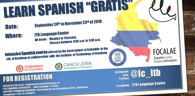 Kursus bahasa Spanyol intensif tersebut terbuka untuk umum dan ditawarkan secara gratis tanpa pungutan biaya apapun. Kursus akan digelar di ITB, Bandung. Rencananya, kelas akan dimulai pada 24 September hingga 23 November 2018 di semua tingkat.