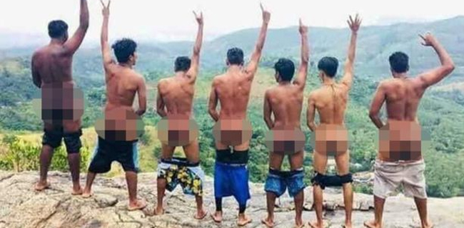 Para pemuda Sri Lanka itu tampak memposting gambar diri mereka saat setengah bugil di Pidurangala Rock di Facebook. Foto diambil di dekat benteng batu Sigiriya yang merupakan sebuah situs Warisan Dunia Unesco,