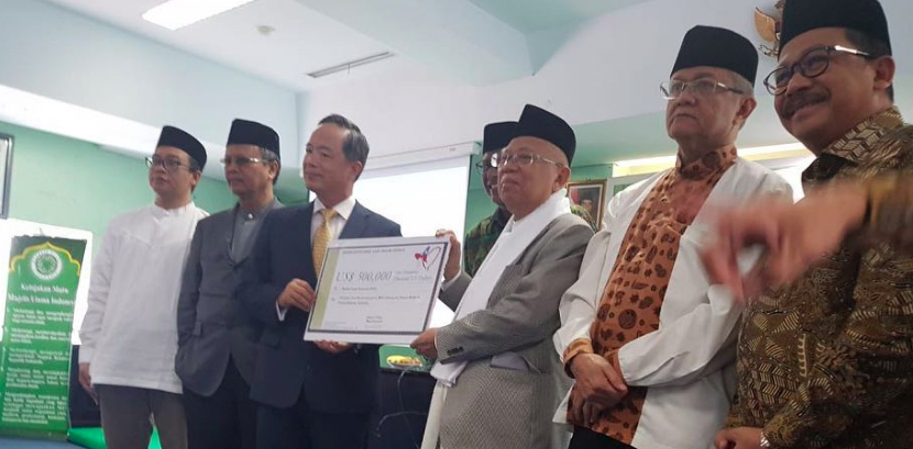 Sumbangan tersebut diterima oleh Ketua Umum MUI Ma'ruf Amin.