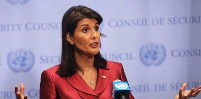 Nikki Haley, merupakan mantan gubernur Carolina Selatan yang aktif mengkritik Donald Trump. Perempuan berusia 46 tahun itu kemudian ditarik Trump untuk menjadi dutabesar untuk PBB pada November 2016, yang dipandang sebagai simbol rekonsiliasi keduanya.