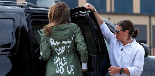 Untuk diketahui, pada saat itu, Melania mengenakan jaket seharga 39 dolar AS yang bertuliskan "I Really Don't Care, Do You?".