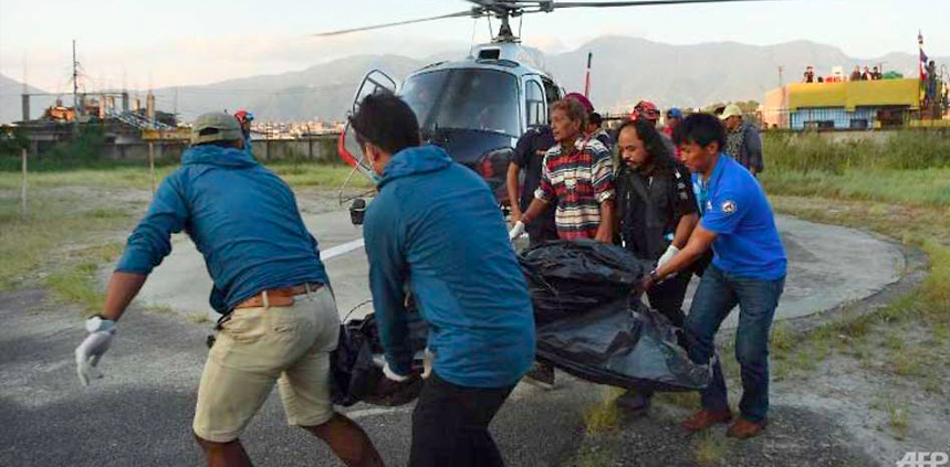 Butuh beberapa helikopter untuk membawa jasad yang terdiri dari lima orang warga Korea Selatan dan empat warga Nepal itu turun dari kamp di pegunungan Dhaulagiri di wilayah Annapurna Nepal.