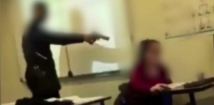 Dalam video itu, remaja tersebut menunjukkan senjata palsu itu kepada gurunya, yang sedang duduk di meja. Dia berteriak padanya untuk menandai dia sebagai hadiah di daftar sekolah.