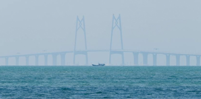 Jemabatan penyeberangan sepanjang 55 km, yang meliputi jembatan jalan yang berliku dan terowongan bawah air itu menghubungkan pulau Lantau Hong Kong ke Zhuhai dan daerah kantong perjudian Macau, di seberang perairan Sungai Mutiara Muara.