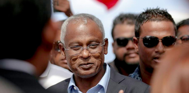 Dia menang dalam pemilu presiden September lalu setelah oposisi bersatu untuk mengusir petahana pro China Abdulla Yameen.