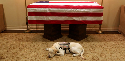 Jurubicara Bush Sr. Jim McGrath akhir pekan kemarin mengunggah foto di akun Twitternya yang menunjukkan Sully tengah tertidur di depan peti mati George H.W. Bush yang ditutupi oleh bendera Amerika Serikat.