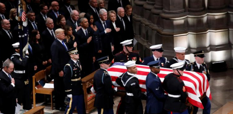 Upacara pemakaman tersebut turut dihadiri oleh Presiden Amerika Serikat Donald Trump, serta mantan presiden Amerika Serikat yang masih hidup, yakni Barack Obama dan Bill Clinton dan Jimmy Carter.