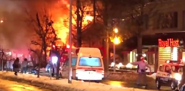 Ledakan besar terjadi di sebuah restoran di distrik Toyohira, kota Sapporo, Jepang utara Minggu malam (16/12).