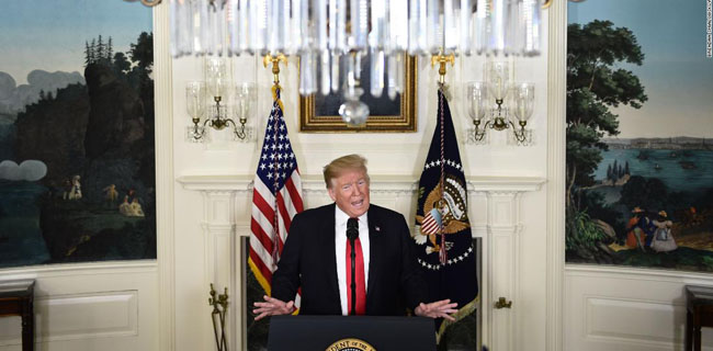 "Itulah sebabnya saya di sini hari ini untuk memecahkan kemacetan dan memberikan tawaran kepada Kongres untuk mengakhiri penutupan pemerintah dan menyelesaikan krisis di perbatasan selatan," kata Trump dalam pidatonya di Gedung Putih, Washington DC.