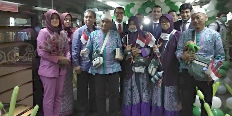 Rombongan haji yang tiba pertama kali di tanah air mendarat pada hari Sabtu (17/8) sekitar pukul 22.15 WIB di Bandara Internasional Soekarno-Hatta. Rombongan ini menggunakan Saudi Arabia Airlines nomor penerbangan SV 5606 yang membawa 410 jemaah haji dari Jeddah.