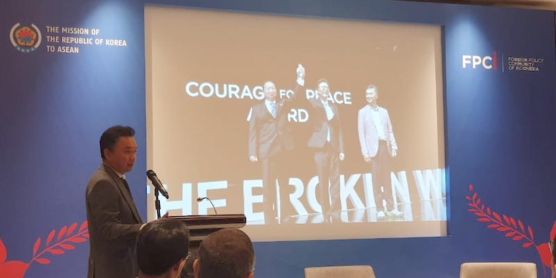 Dalam RTD yang dihadiri peneliti, pemerhati, dan peminat isu Semenanjung Korea ini Dino menjadi pembicara kunci.