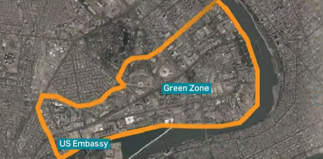 Zona Hijau adalah daerah seluas 10 kilometer persegi yang sangat dilindungi karena menjadi tempat kantor pemerintah dan kedutaan asing di distrik Karkh, Baghdad, Irak. Serangan roket sebelumnya pernah terjadi di zona ini pada 19 Mei lalu.