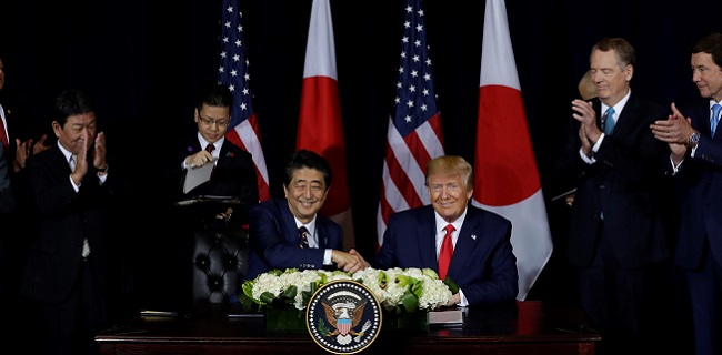Channel News Asia, Jepang akan memangkas tarif ekspor pertanian AS senilai 7 miliar dolar AS atau setara dengan Rp 99 triliun (kurs: Rp 14.154/dolar AS), termasuk daging sapi dan babi. Serta mengurangi kenaikan harga pembelian gandum dan jelai AS.