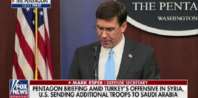 Demikian yang disampaikan Menteri Pertahanan AS, Mark Esper dalam konferensi pers yang disiarkan di televisi, Jumat (11/10).