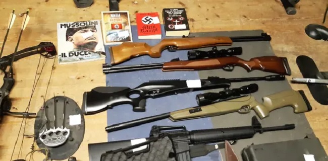 Dalam penggerebekkan yang dilakukan di sejumlah wilayah di Italia itu, polisi menemukan senjata, bahan peledak, plakat Nazi yang menampilkan swastika, bendera Nazi, dan buku-buku tentang Adolf Hitler dan Benito Mussolini.