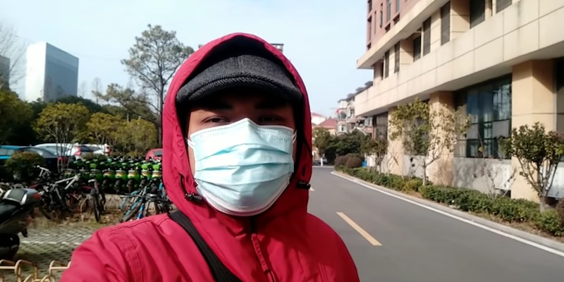 Sekitar 7 jam lalu, Rio mengupload vlog yang memperlihatkan situasi di kota Wuhan yang masih tetap sepi. Dalam vlog terakhir ini Rio mengenakan jaket merah dan masker berwarna hijau muda.