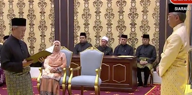 "Saya Muhyiddin bin Muhamad Yassin, setelah dilantik memegang jawatan sebagai Perdana Menteri, sepenuhnya bersumpah bahwa saya akan dengan jujur menunaikan kewajiban-kewajiban jawatan itu dengan segala daya upaya saya," sumpahnya.