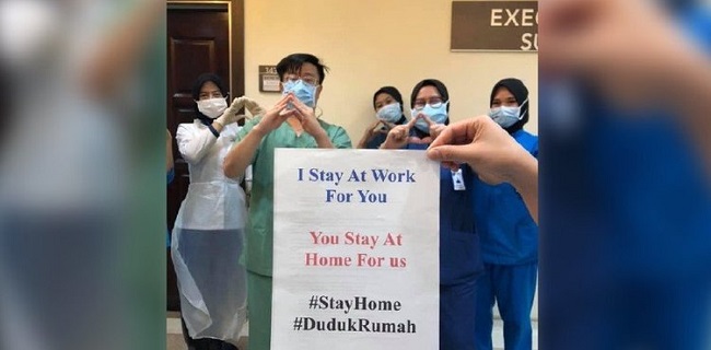 Selain itu, para dokter dan petugas medis lainnya juga ikut mengunggah foto dengan imbauan serupa, berharap agar warga Malaysia mengerti dan tetap tinggal di rumah hingga akhir bulan nanti.