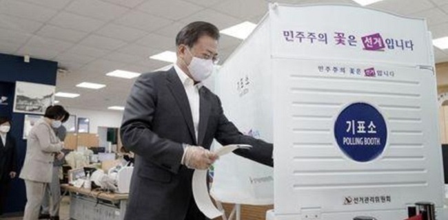 Sementara itu, Presiden Moon Jae-in memberikan suara di TPS dekat Gedung Biru.