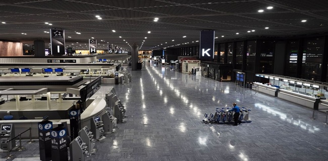 Penampakan pada hari Rabu (15/4), melansir AP, konter-konter tiket tampak kosong, bangku ruang tunggu sangat lengang, dan area food court begitu sunyi.