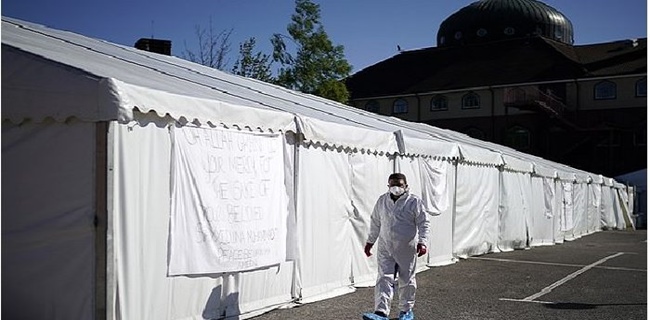 Penambahan ruang penyimpanan mayat di masjid ini seiring dengan tingkat kematian muslim akibat Covid-19 yang cukup tinggi.