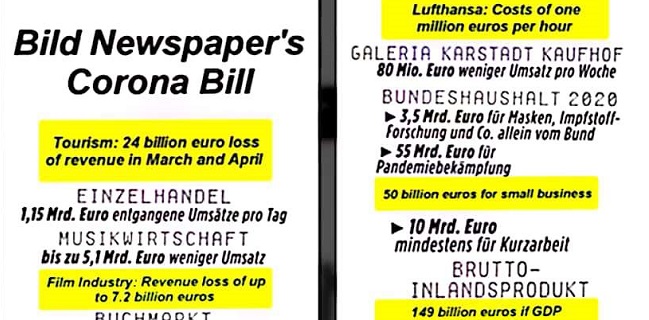 Bild muncul isu bahwa Jerman menagih 149 miliar euro atau setara dengan Rp 2.521 triliun (Rp 16.921/euro) kepada China karena telah "berutang" atas dampak pandemik Covid-19 yang kian meluas.