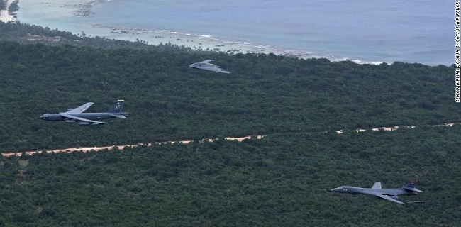 Pasalnya, lima buah pesawat pembom jenis B-52 Stratofortresses terbang milik Amerika Serikat meninggalkan Pangkalan Angkatan Udara Andersen di pulau Pasifik tersebut pada 17 April lalu.