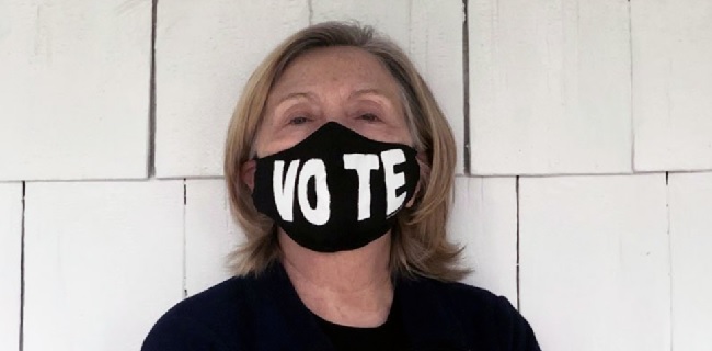 Beberapa di antaranya mengedit tulisan "VOTE" di masker Hillary dengan berbagai kalimat atau kata.