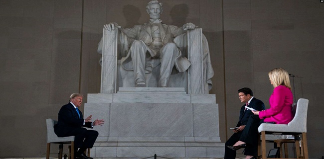 Dalam sebuah wawancara, Trump membandingkannya dengan Abraham Lincoln, presiden era Perang Saudara yang dibunuh pada 1865.