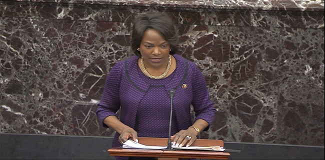 Demings pertama kali menarik perhatian nasional memainkan peran kunci dalam sidang impeachment dan persidangan Trump musim gugur dan musim dingin yang lalu. Namun, saat ini perhatian orang kepadanya lebih pada latar belakangnya, putri Afrika-Amerika dari petugas kebersihan Jacksonville dan seorang pelayan yang menjadi pekerja sosial, seorang polisi, seorang kepala polisi, dan kemudian anggota Kongres.