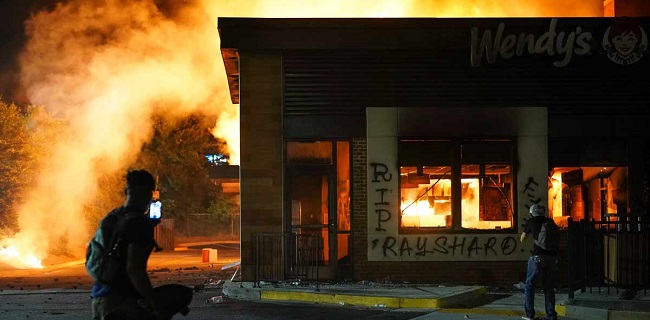 Di tengah protes yang meletus pada Sabtu malam (13/6), para demonstran membakar restoran yang berada di 125 University Ave tersebut. Terlihat api merah di tengah gelapnya malam Atlanta pada gambar-gambar yang dirilis di media sosial.