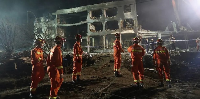 Xinhua juga melaporkan, ada ledakan kedua ketika truk jatuh ke bengkel di dekat jalan tol setelah ledakan pertama.
