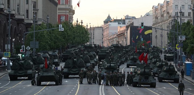 Victory Day Parade sebenarnya diselenggarakan setiap 9 Mei, namun ditunda menjadi Rabu (24/6) karena pandemik Covid-19. Penyelenggarannya dilakukan di Lapangan Merah, Moskow.