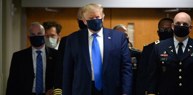 Kunjungan Trump ke Pusat Kesehatan Militer Nasional Walter Reed pada Sabtu (11/7) menjadi penampilan publik pertamanya dengan masker setelah virus corona baru mewabah selama lebih dari setengah tahun.