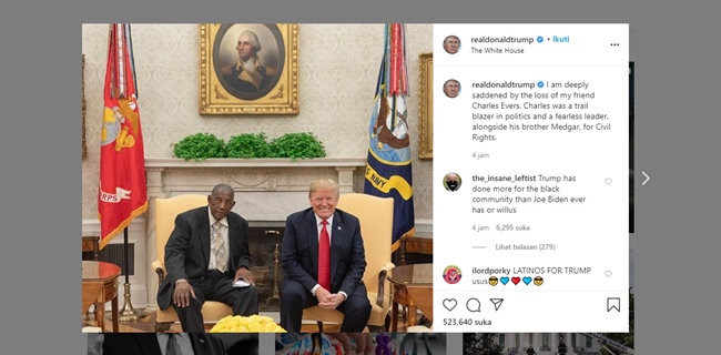 Trump mengunggah foto dirinya saat sedang bersama dengan Charles Evers.