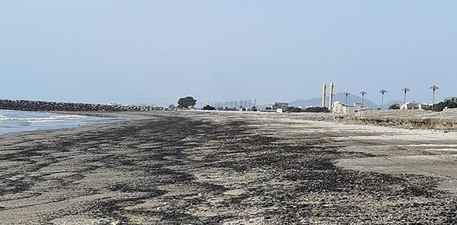 "Kami menerima foto-foto minyak yang menutupi pasir pantai dari orang-orang yang berada di pantai sekitar jam 6 pagi," kata warga, yang berbagi gambar di akun Instagram Hisn Kalba.