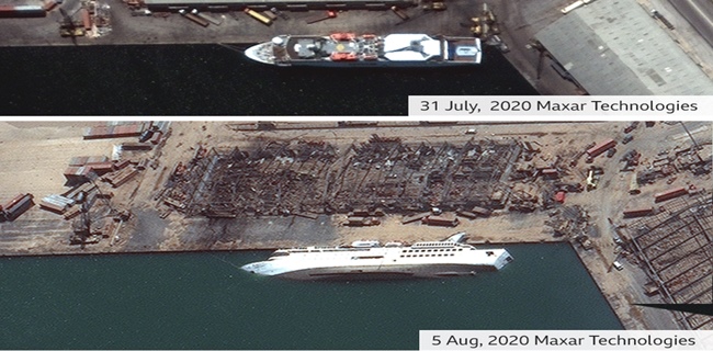Ledakan menimbulkan kerusakan pada beberapa bagian kapal, menyebabkan air masuk ke kapal itu sedikit demi sedikit hingga kemarin malam, Kamis (6/8) kapal sepanjang 120 meter itu terbalik.