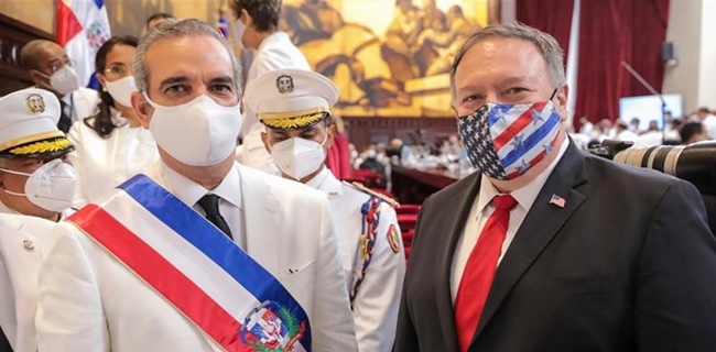 Menteri Luar Negeri AS Mike Pompeo dan Menlu Turki Mevlut Cavusoglu termasuk di antara peserta pada upacara pengambilan sumpah hari Minggu di Santo Domingo.