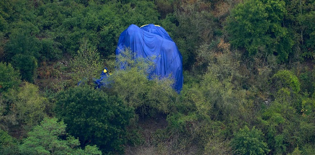 "Balon menghantam tanah beberapa kali, membuat empat penumpang terlempar dari keranjang, sebelum terseret ke bawah bukit dan tersangkut di pohon," ujar polisi seperti dikutip