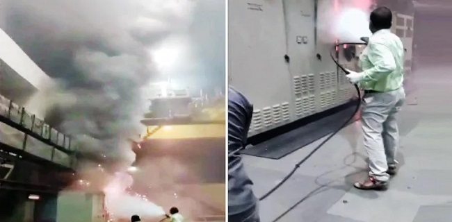 Di media sosial, muncul berbagai video yang menunjukkan petugas fasilitas berusaha mengendalikan korsleting listrik hingga akhirnya muncul asap tebal dan kebakaran dahsyat.