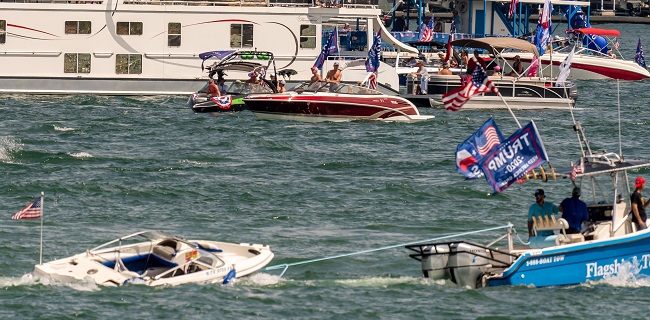 Dari sejumlah foto dan video yang tersebar di media sosial terlihat banyak kapal mengibarkan bendera kampanye Trump 2020 di Danau Travis. Terdengar jeritan ketika beberapa kapal mulai tenggelam sementara pihak berwenang dan penyelenggara berusaha untuk menyelamatkan mereka.